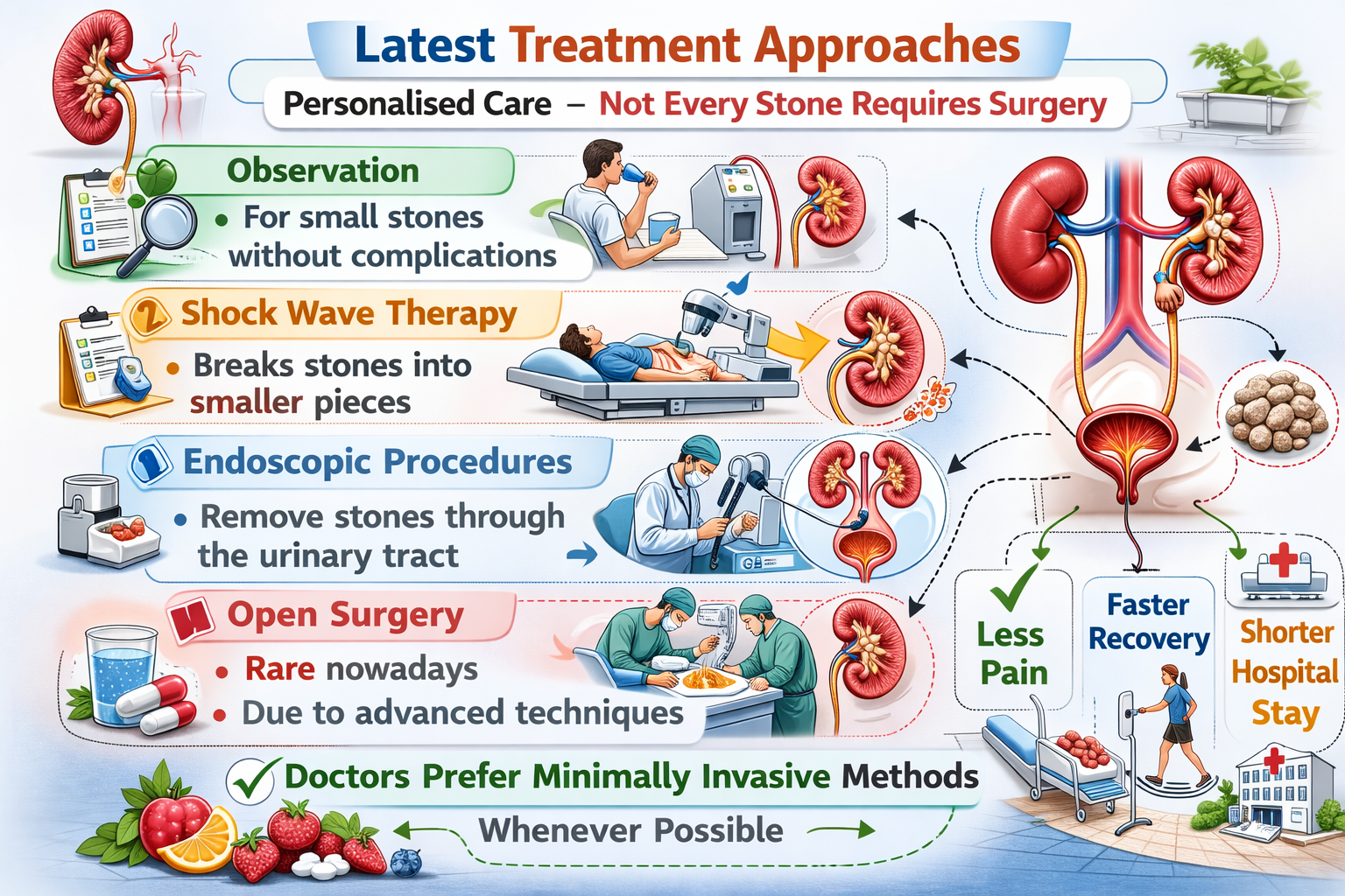 Modern kidney stone treatment focuses on personalised care. Not every stone requires surgery.
